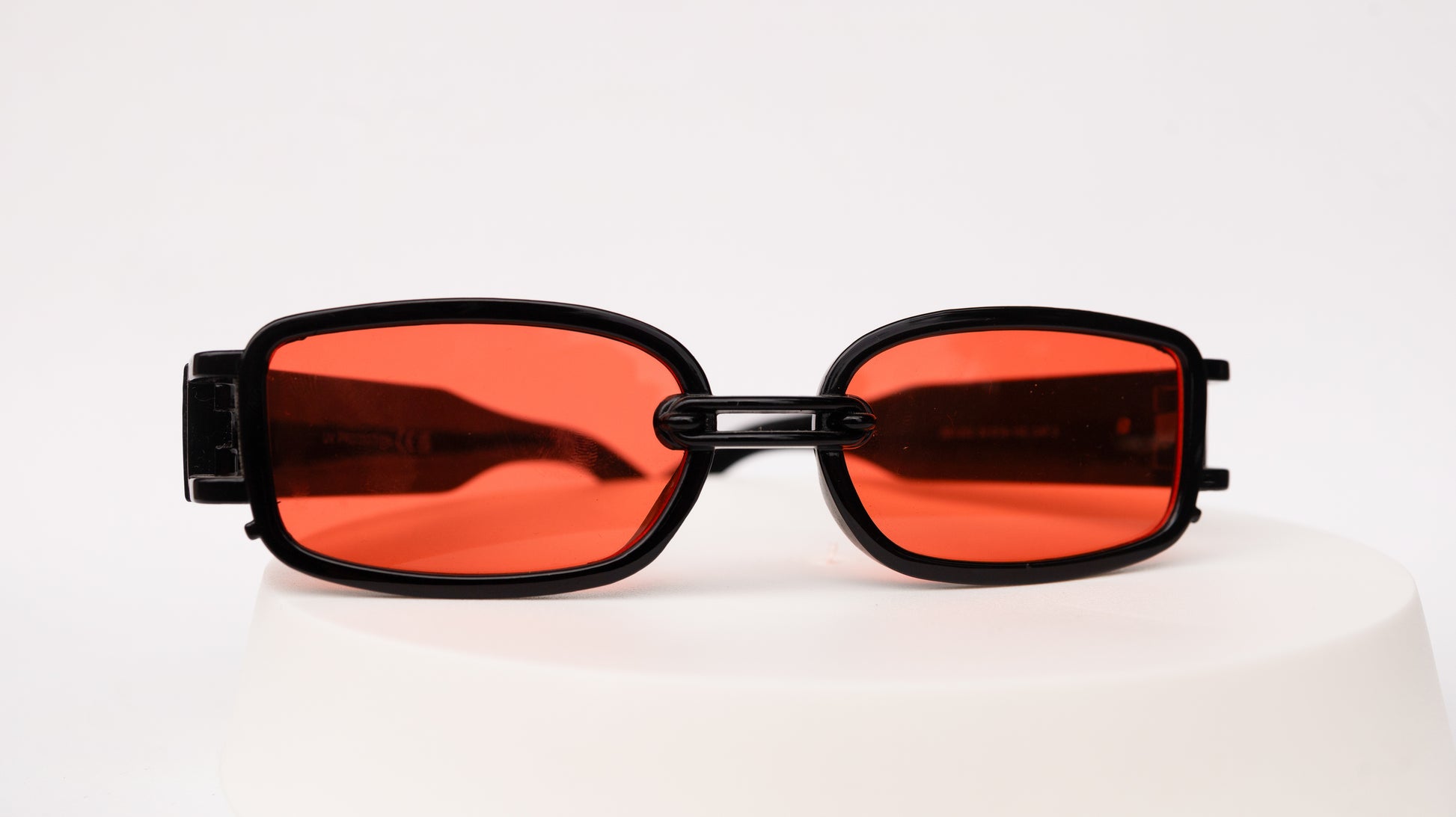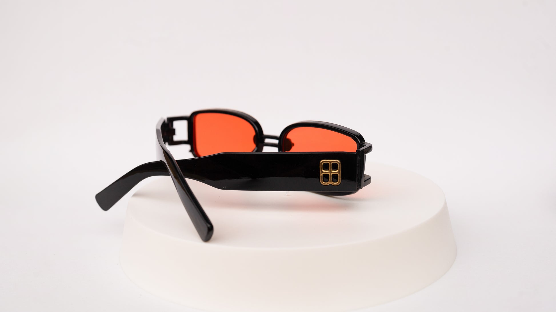 - Las gafas "Horizonte Rubí" combinan un diseño moderno y audaz con un toque de sofisticación. Este modelo cuenta con lentes horizontales de color rojo claro, ofreciendo una apariencia distintiva y llamativa. Los mangos son negros y presentan un elegante detalle dorado en forma de dos B, que asemejan un cuadro al inicio de cada mango, añadiendo un toque de lujo y originalidad. Estas gafas son ideales para quienes buscan un accesorio único y estilizado que destaque en cualquier ocasión.